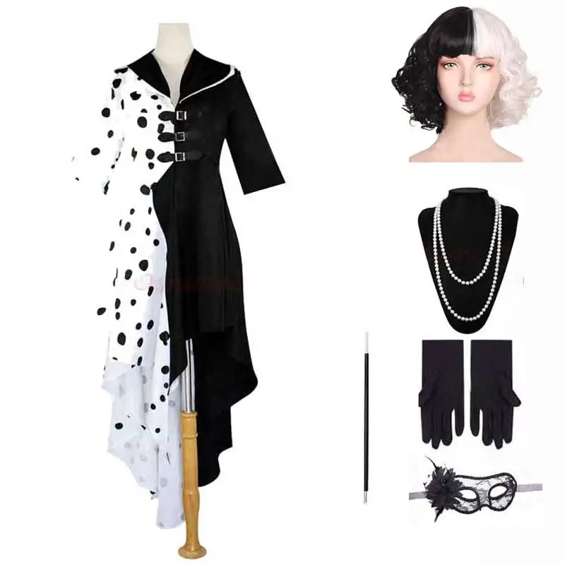 Set 1: Dress + Wig + Cigarate Holder + Necklace + Mask + Black Gloves