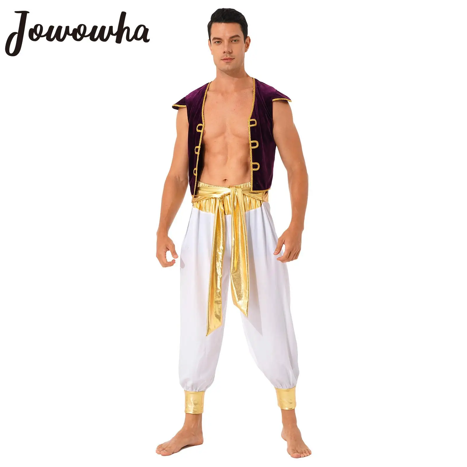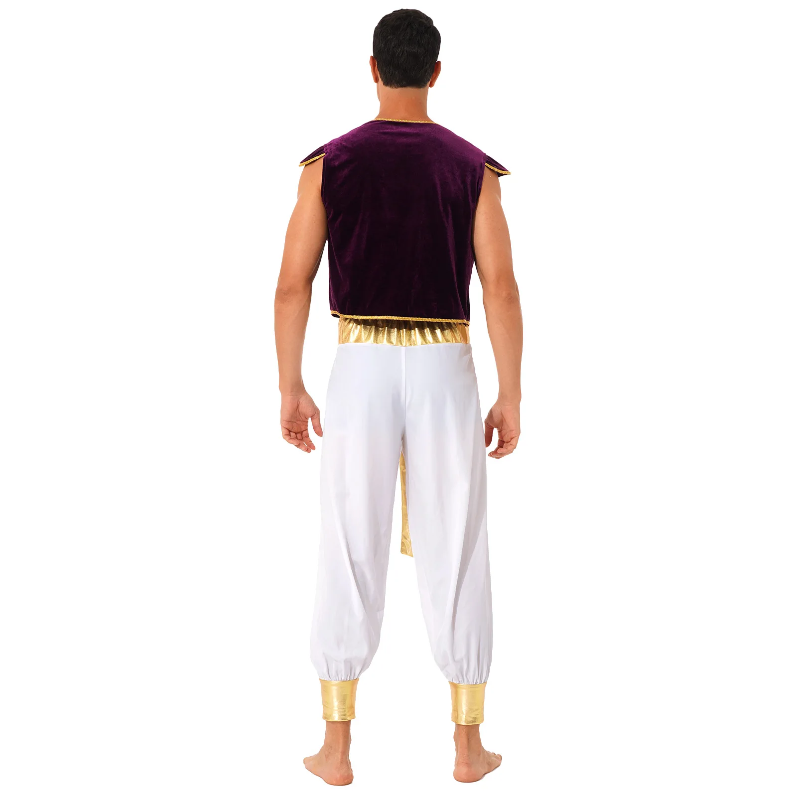 Men Arabian Prince Role Play Costume Halloween Fancy Dress Ball Outfits.