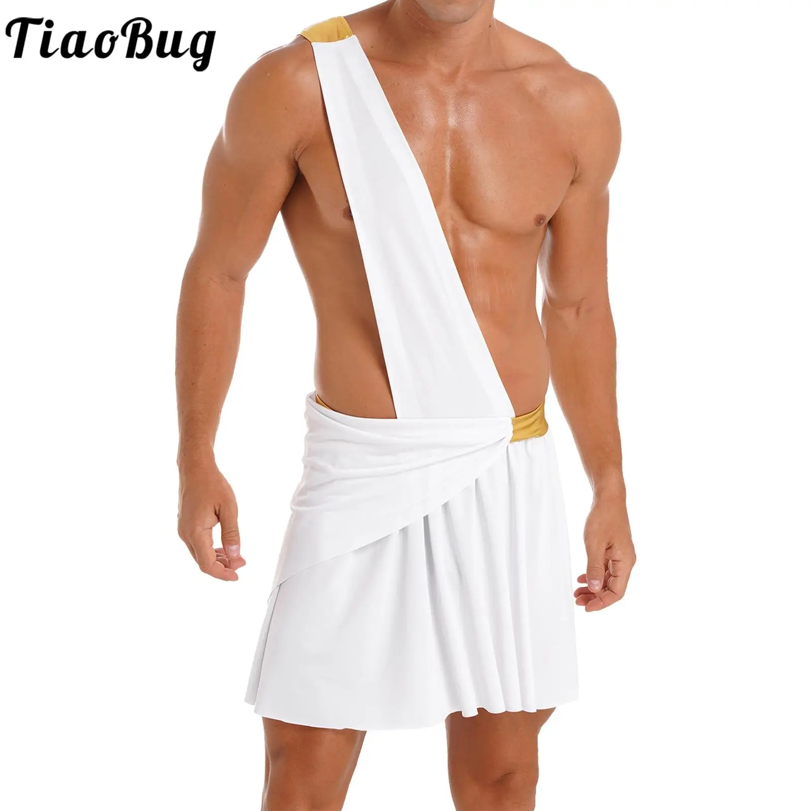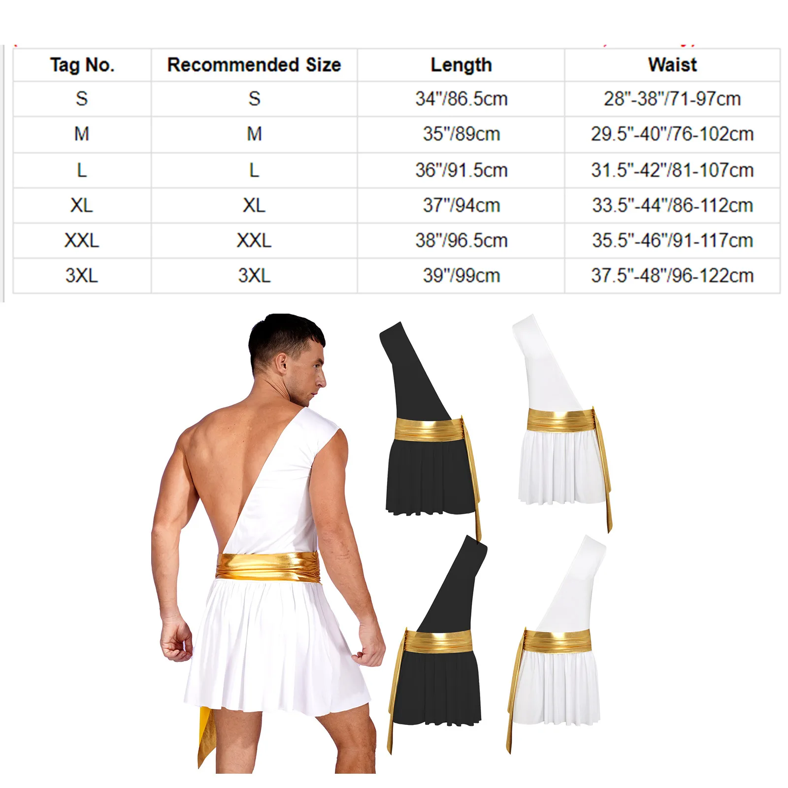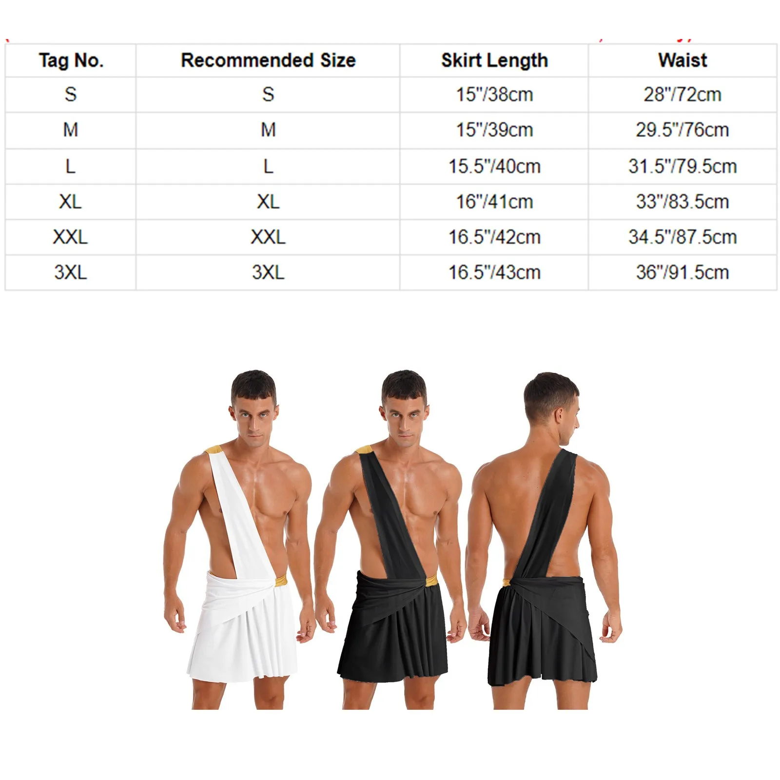 Mens Halloween Theme Party Role Play Costume One Shoulder Strap Contrast Color Waistband Ruffle Skirt