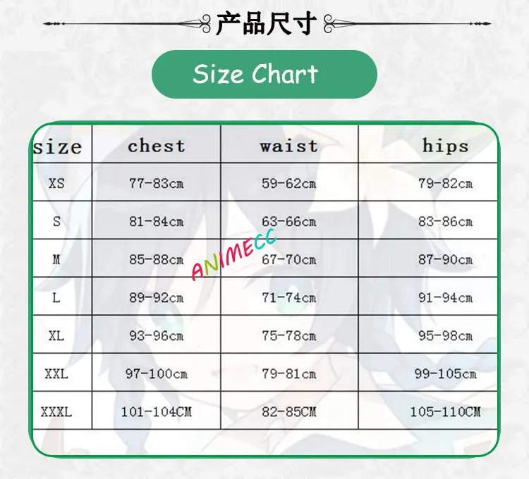 SIZE XS:chest 77-80cm,waist 59-62cm,hips :79-82cm